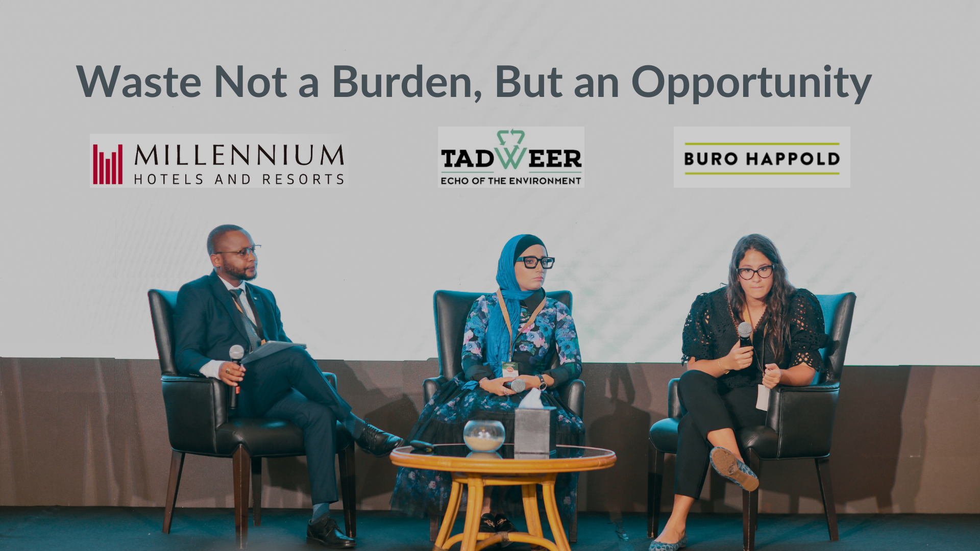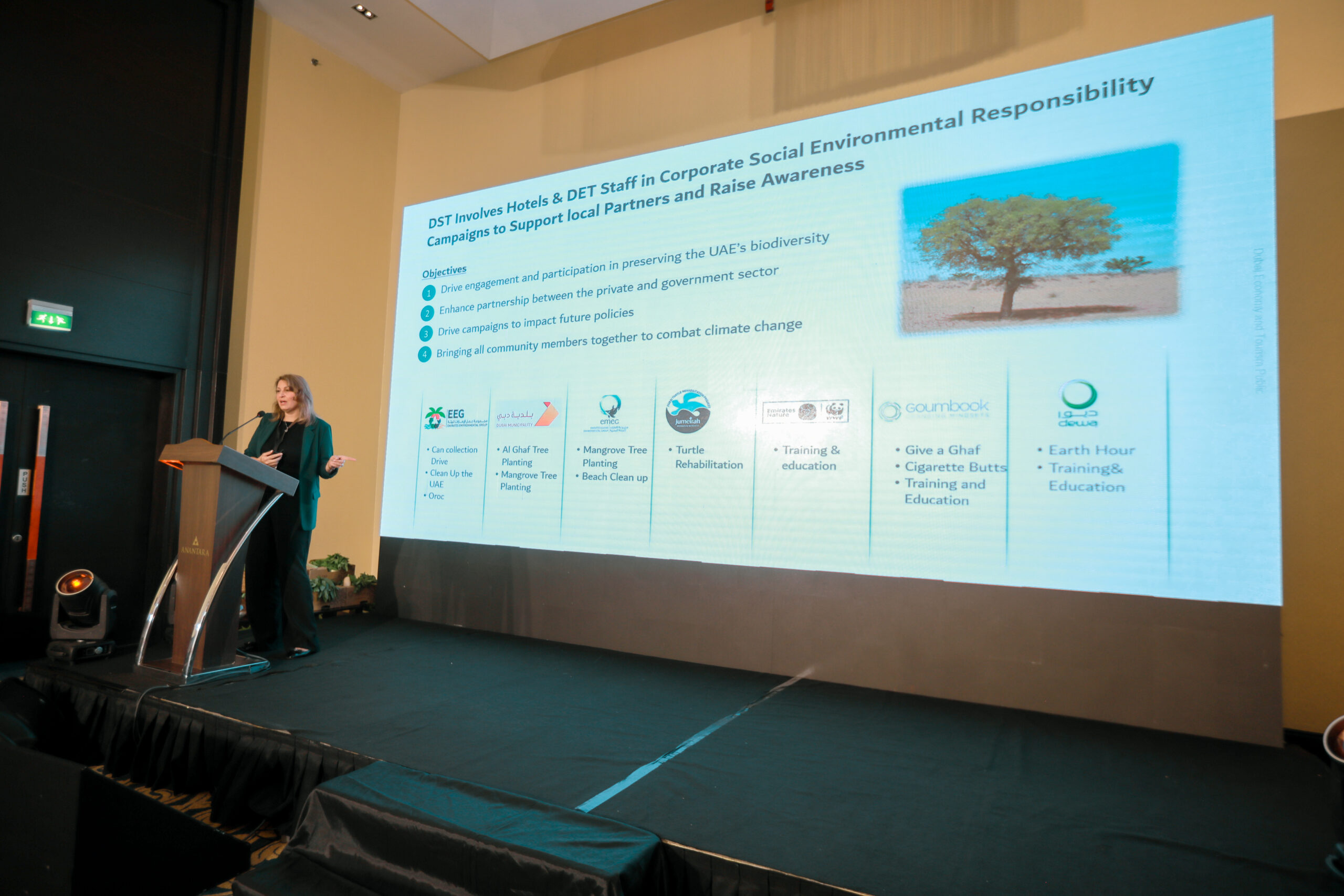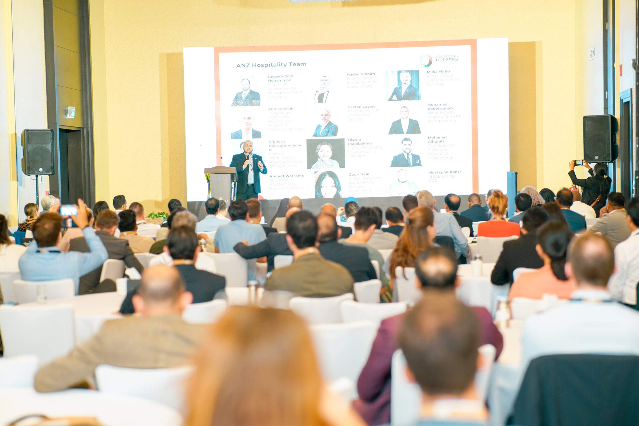 Keynote speakers included Mustapha Aanzi, Board member of Advancing Net Zero Volunteering Team; James Hewitson, General Manager at Anantara The Palm Dubai Resort; and Enas Sobhy, Head of Corporate Social Responsibility, Tadweer